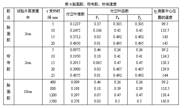 胎面膠(50份合成膠)導溫系數(shù)0.00165;簾布膠(30份合成膠)導溫系數(shù)0.00130
